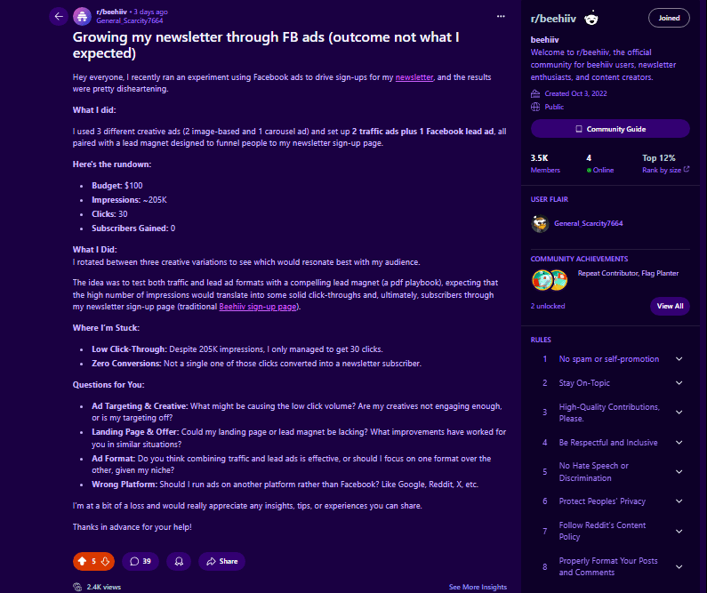 Important lesson: Relying only on paid channels is costly and not very effective in short time. Use platforms like SparkLoop wisely to grow your community as creator, quickly and easily.